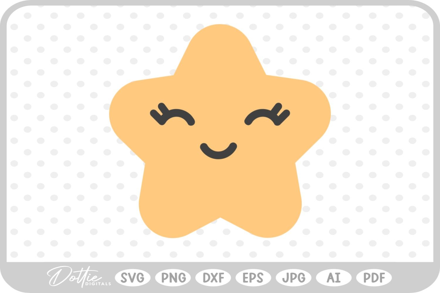 Cute Face Star Shooting Shape Sky Night Space SVG PNG DXF example image 1