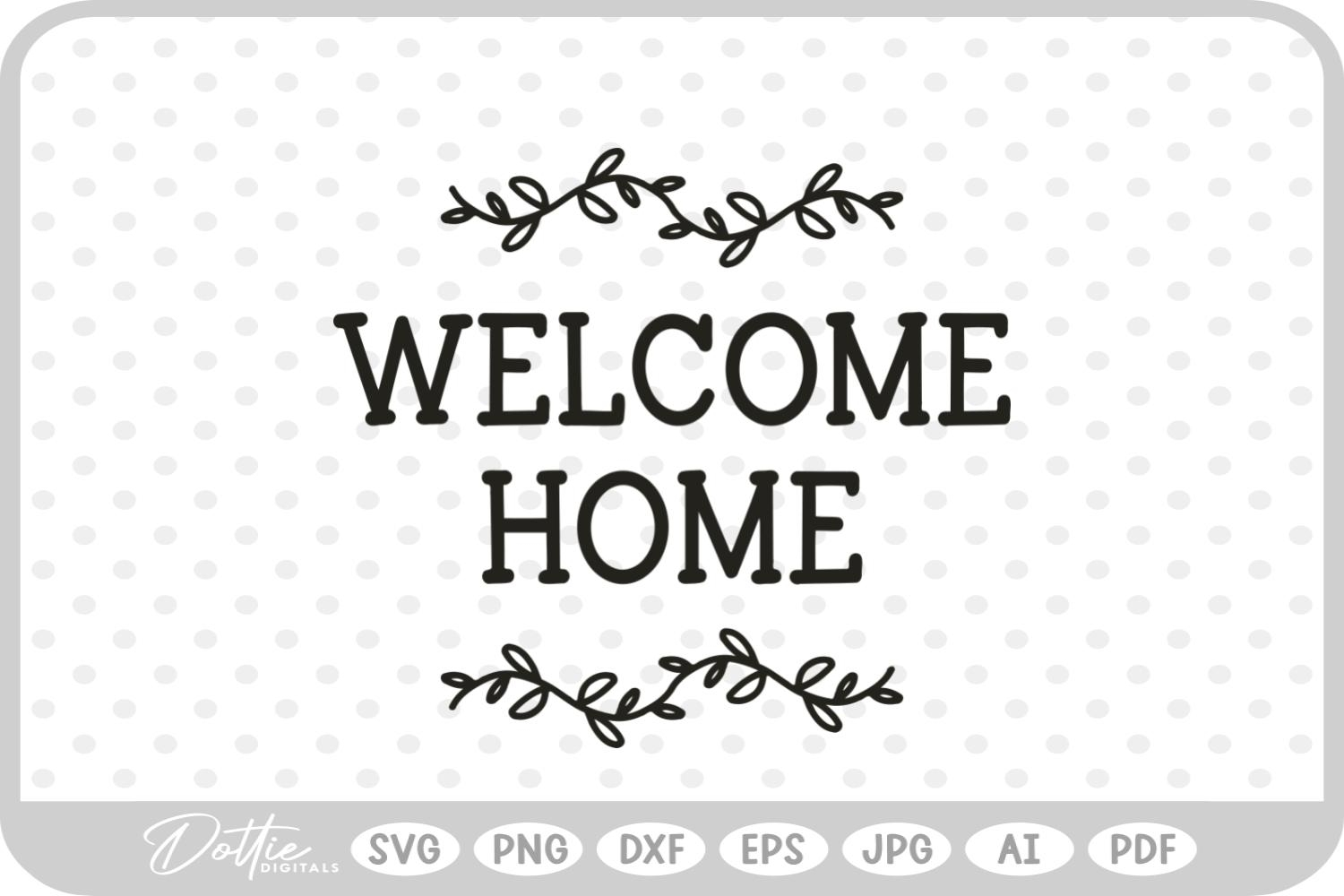 Welcome Home Botanical Hand Drawn Vine SVG PNG DXF