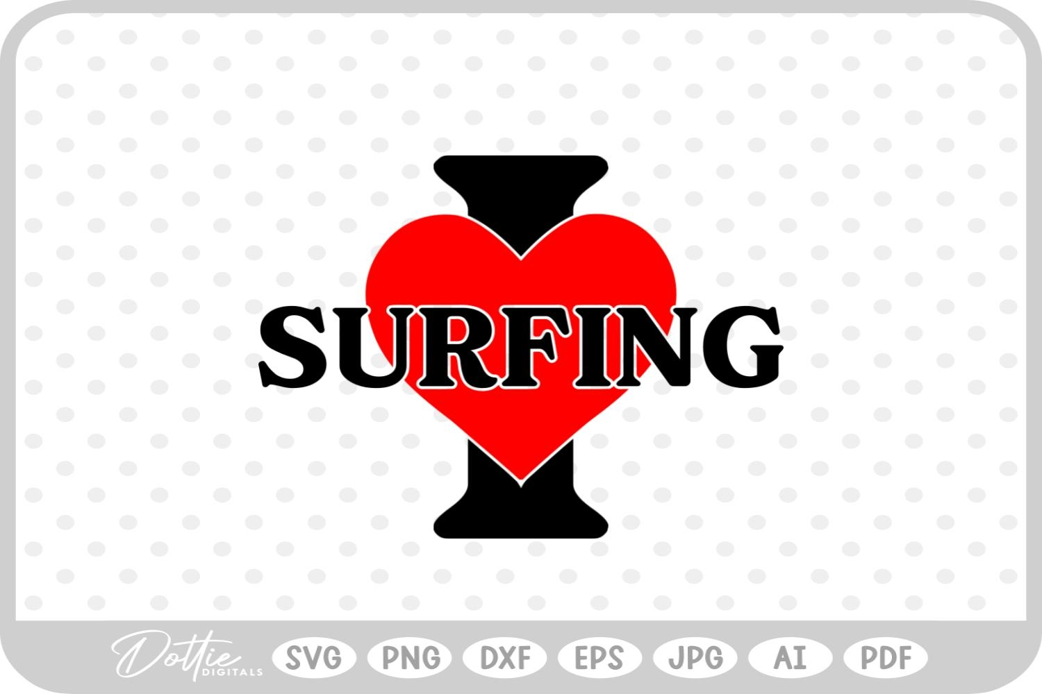 I Love Surfing Sport Hobby Athlete SVG PNG DXF