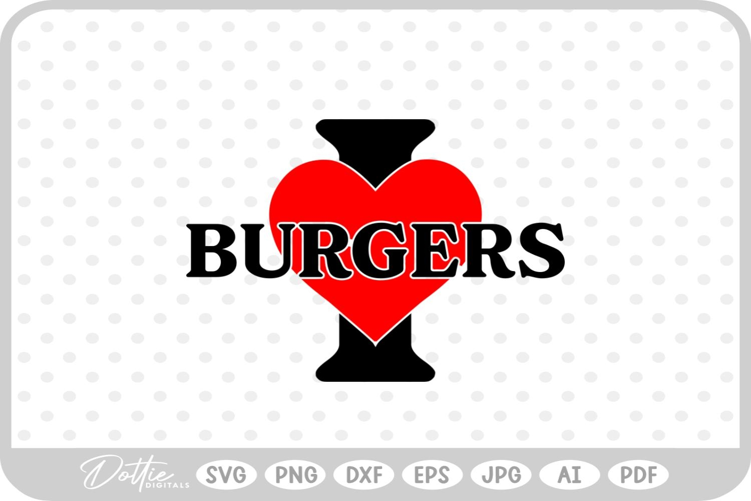 I Love Burgers Food Drink SVG PNG DXF
