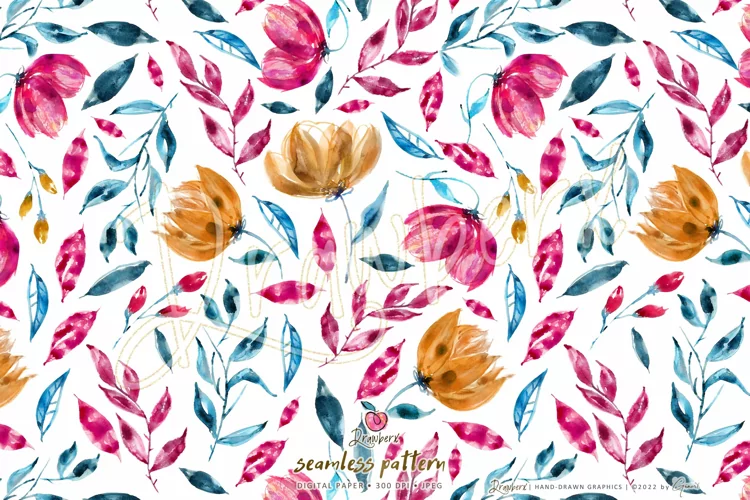 Watercolor Flowers Seamless Pattern Floral Pattern Watercolor Floral Seamless Design Flowers Seamless Floral Seamless File Digital Fabric Print Surface Design File Repeat File Flowers