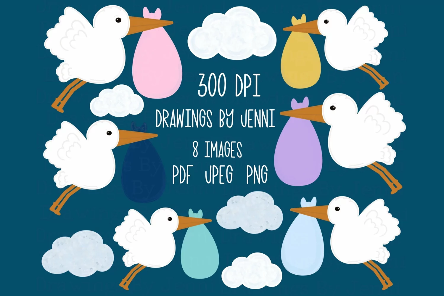 Similar Design Products to Stork Clipart Set, Stork Delivery Illustrations