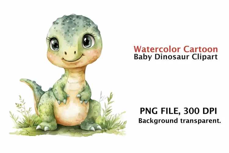 Watercolor Cartoon Baby Dinosaur Clipart png, Watercolor example image 1