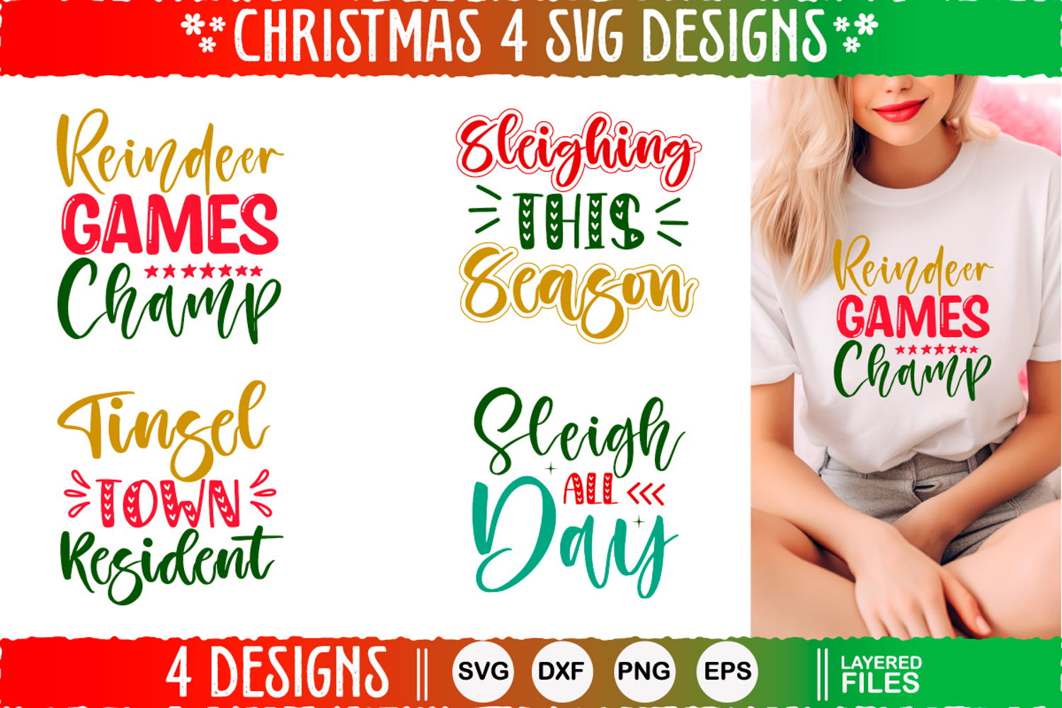 4 Christmas SVG Designs Bundle: