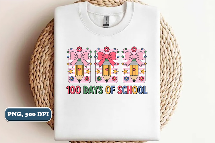 100 Days of School PNG, Pencil Bow PNG design example image 1