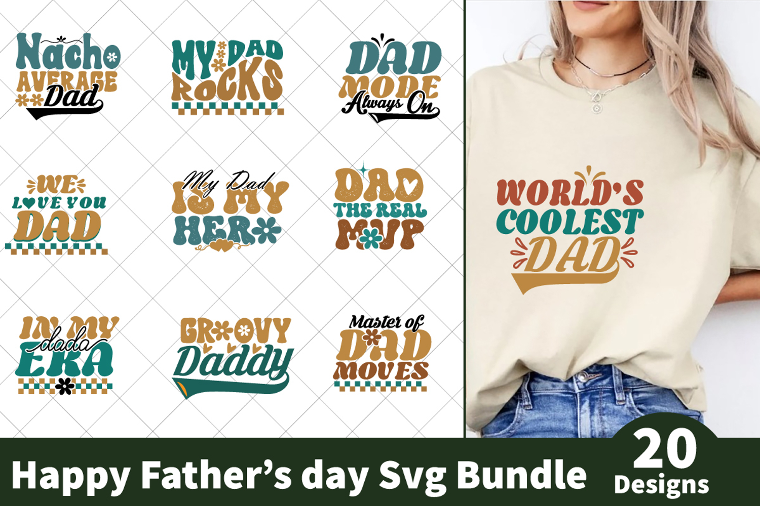 Father's day retro SVG Bundle, 20 Designs