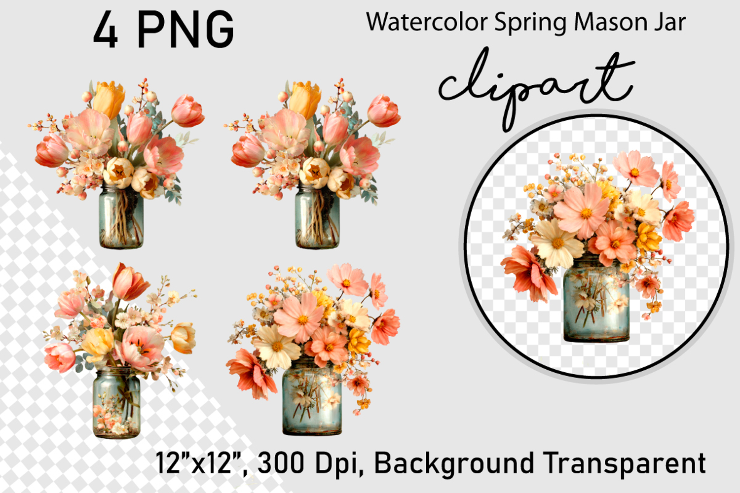 Watercolor Spring Mason Jar Clipart