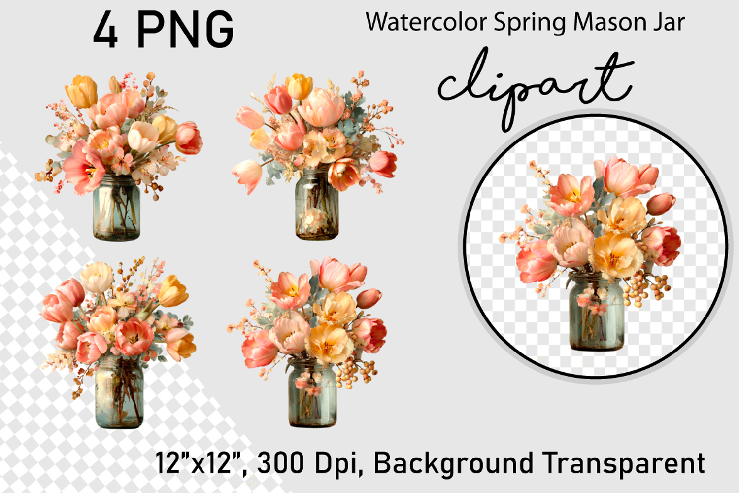Watercolor Spring Mason Jar Clipart