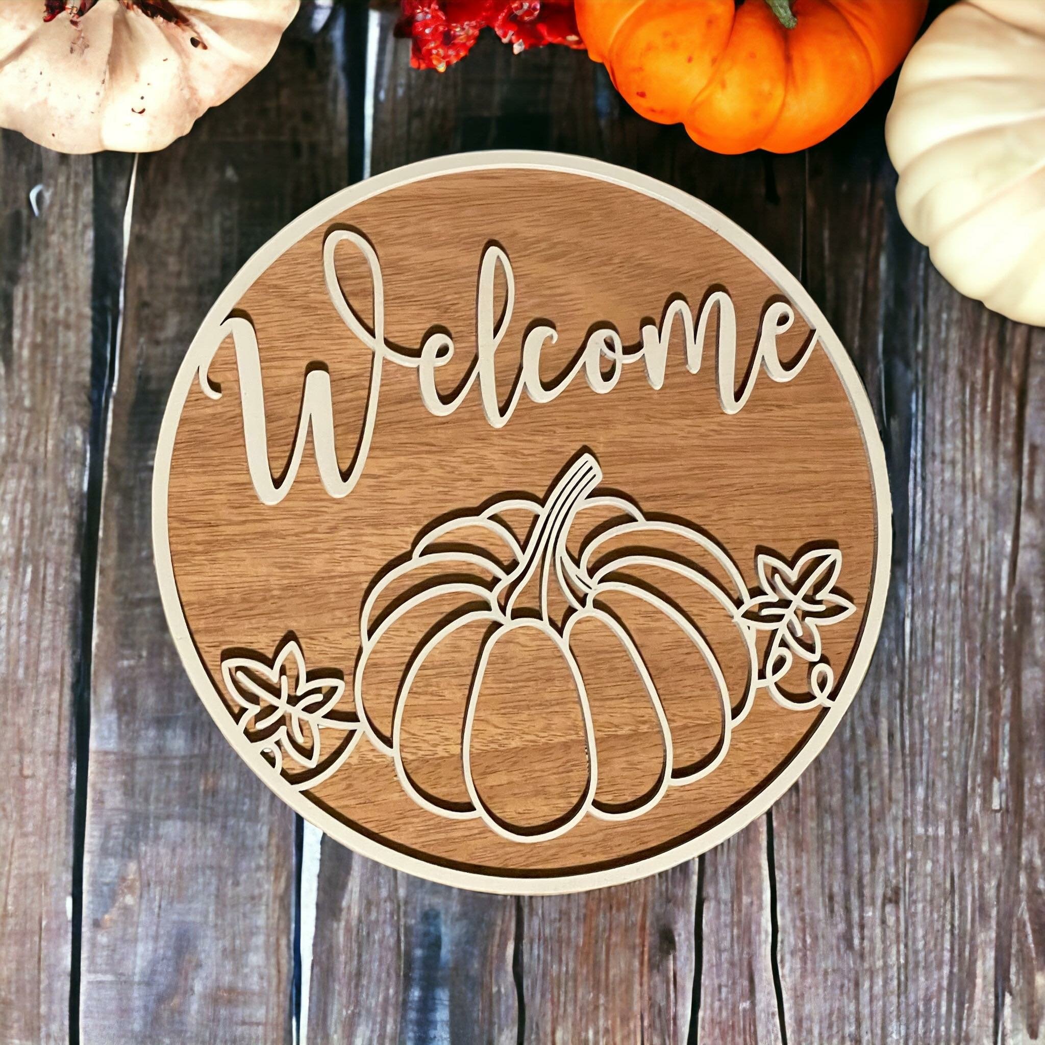 Welcome sign svg Fall door hanger laser cut Pumpkin sign svg