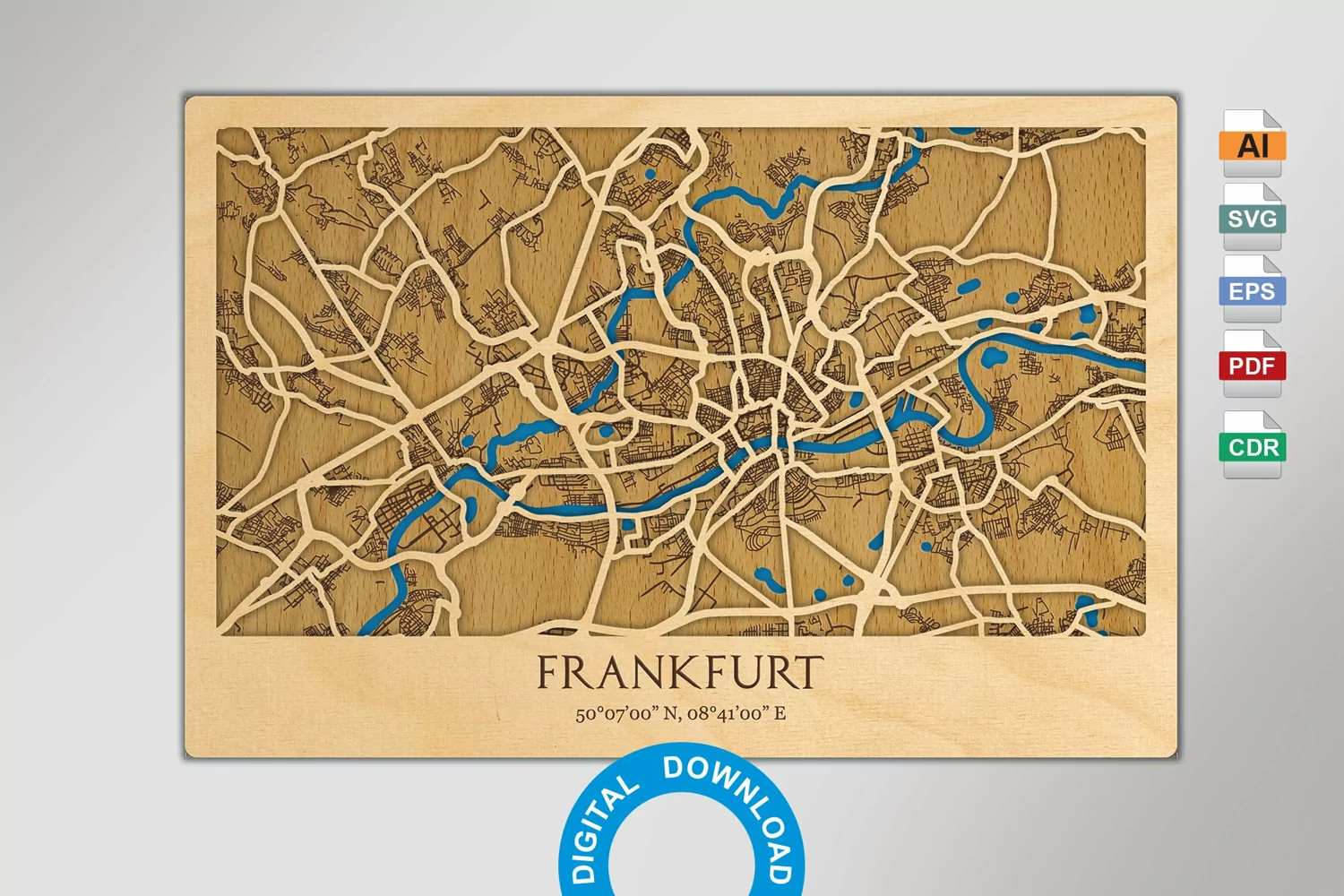 Frankfurt map Svg file for lasers, Glowforge map, Multil example image 1