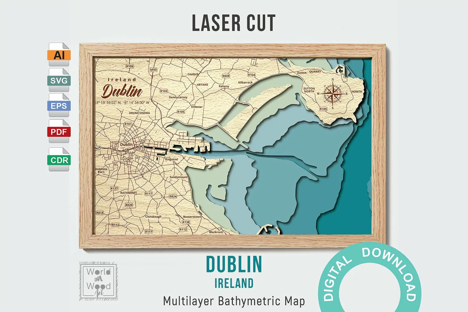 Dublin Laser Cut Laser Cut Design Laser Files Wood Multilayer Laser Water Layers Dublin Map Dublin Laser Map Dublin Map Svg Dublin Wooden Map