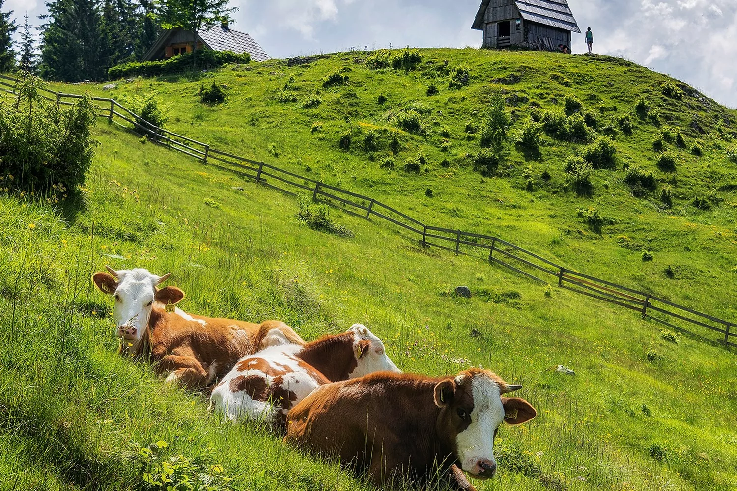 Green Wood Clouds Grass Sky Cow Cows Cottages Zajamniki Pastures