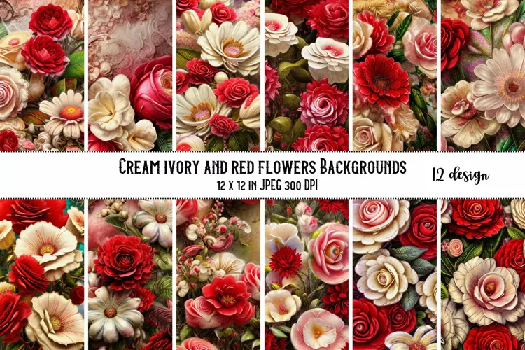 12 Cream ivory and red floral shabby chic backgrounds