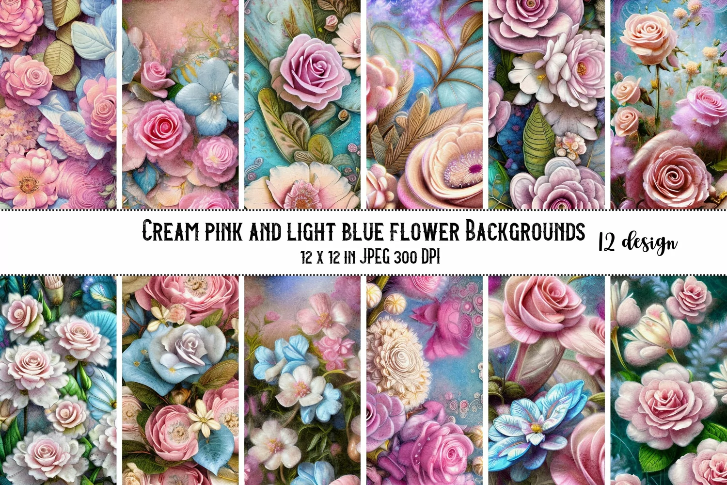 12 Cream pink and light blue floral shabby chic backgrounds