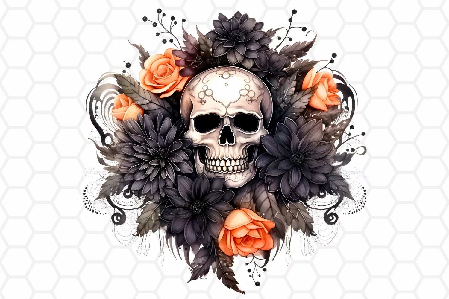 Halloween Floral Skull Bouquet Clipart Sublimation