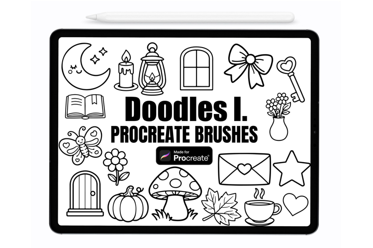 This pack includes 20 cute doodle-style stamp brushes for the Procreate app.