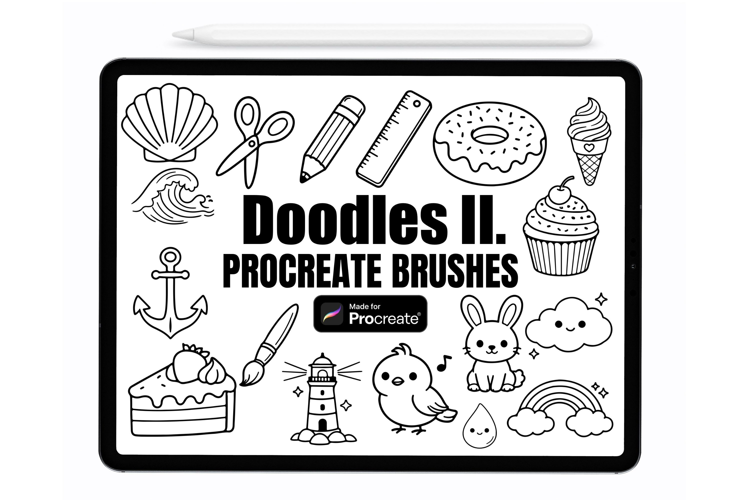 This pack includes 20 cute doodle-style stamp brushes for the Procreate app.
