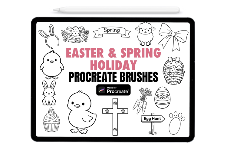 This pack includes 20 cute Easter & Spring Holiday stamp brushes for the Procreate app.
