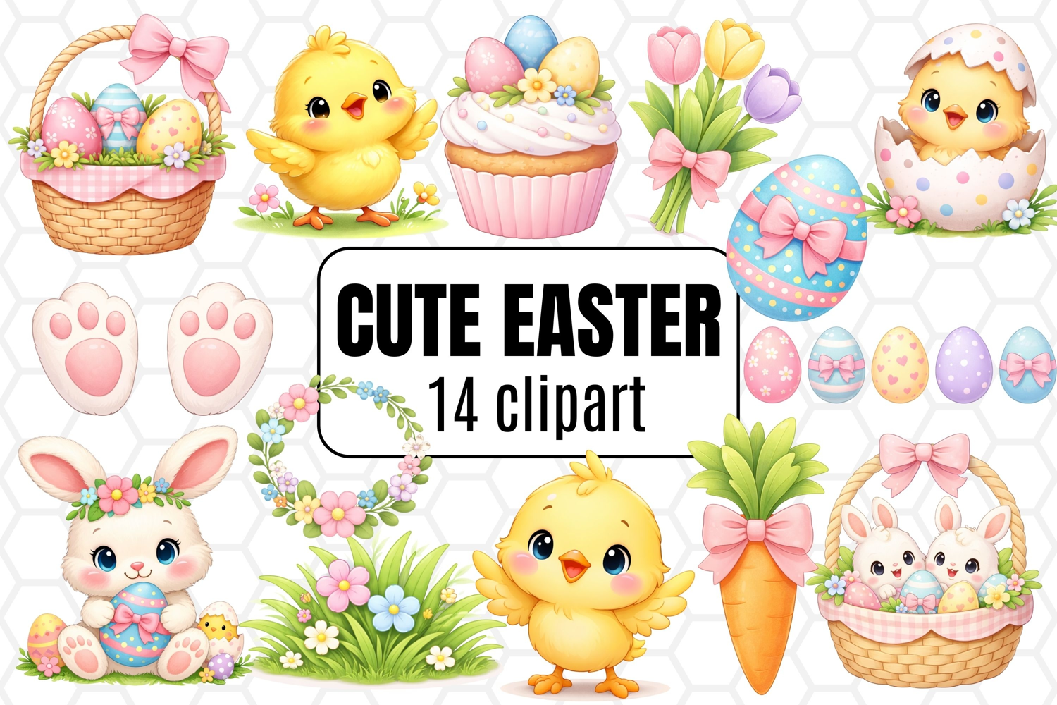 Similar Design Products to 14 Cute Easter Cliparts - Easter Clipart Bundle