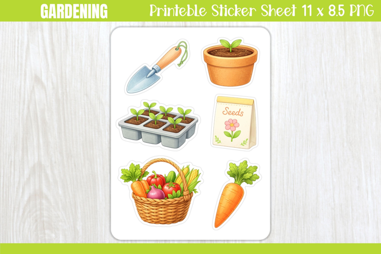 Gardening Printable Stickers - PNG Sticker Sheet