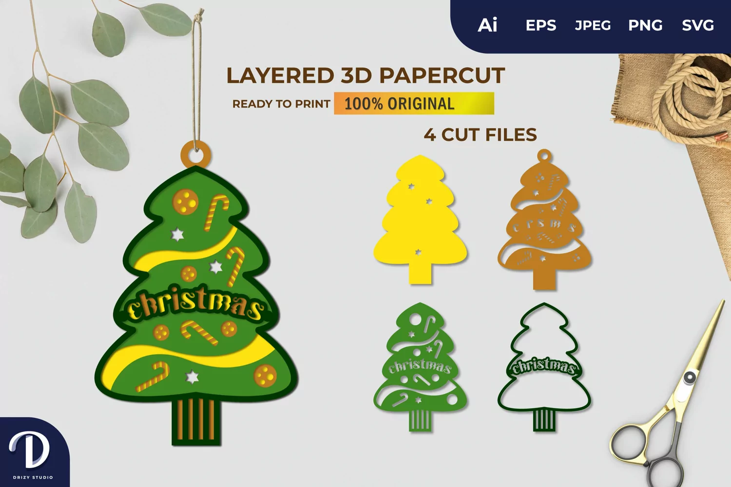 Similar Design Products to 3D Papercut Christmas Tree Layered Template