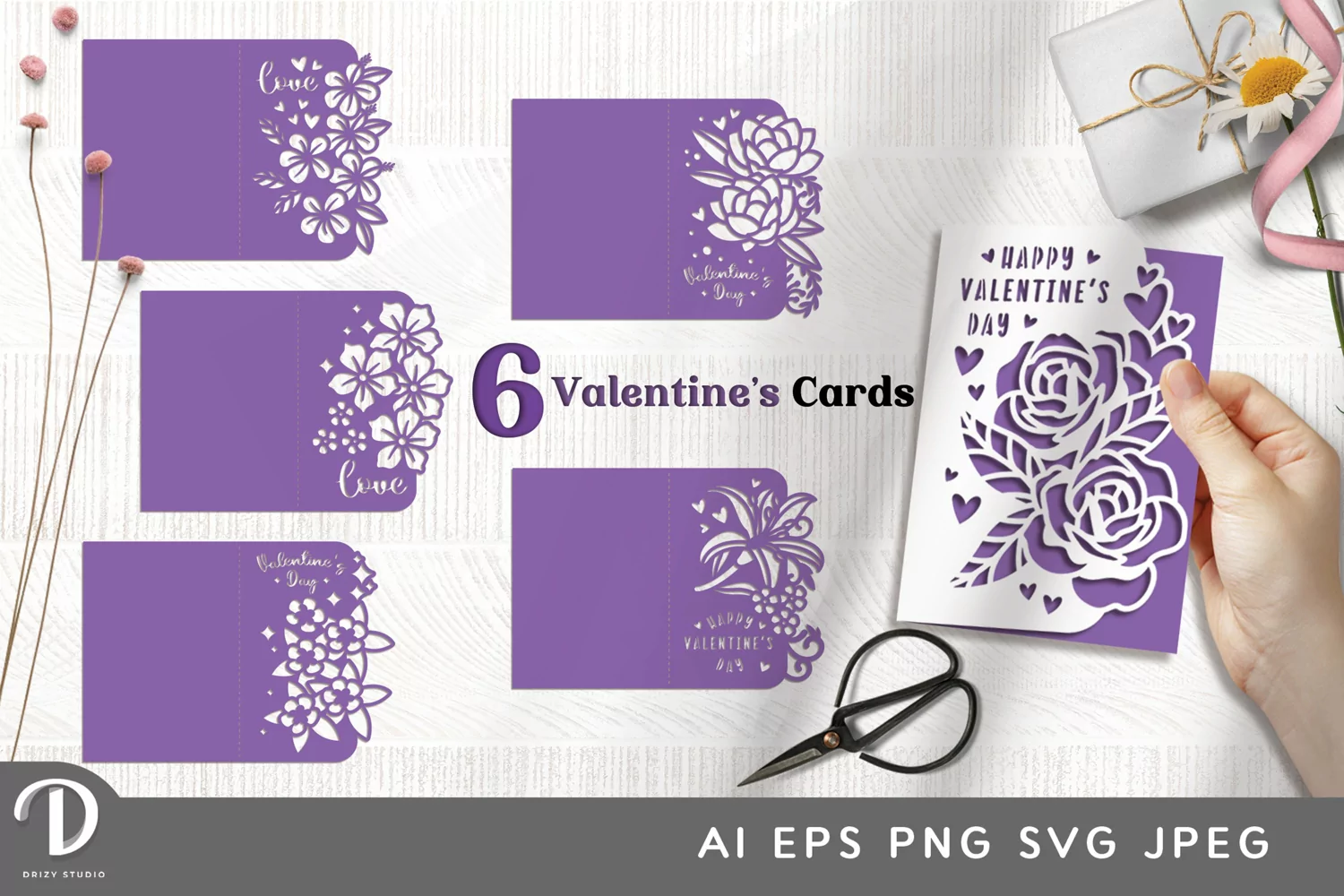 Floral Valentines Card Paper Cut SVG Bundle - Valentines SVG