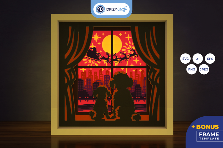 This is a layered, square paper-cutting template of this Window to the New Year Light Box. You will receive this New Year SVG template in the following formats: