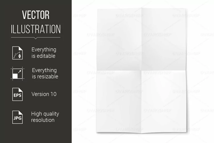 Vector Paper Background White Blank Folded Fold Four 4 Crease