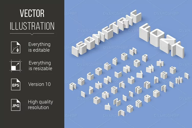 Font Letter Typography 3d Vector Alphabet Background Isolated Blue Isometric
