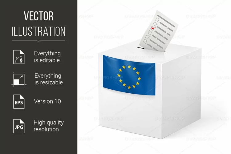 Ballot box with voicing paper. European Union. example image 1