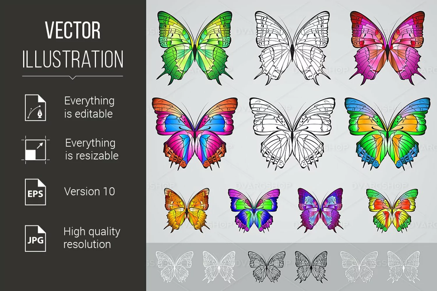 Set of different colored butterflies