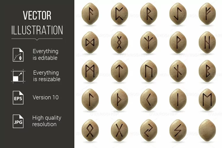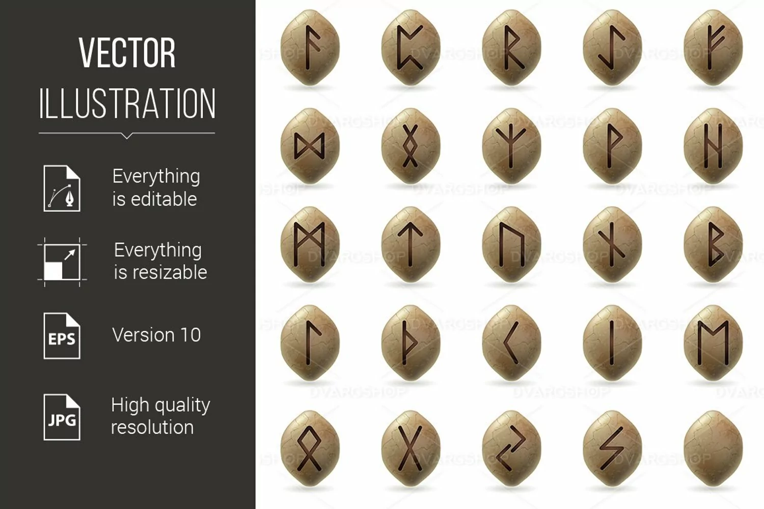 Letter Round Craft Rune Set Background Magic White Stones Runic