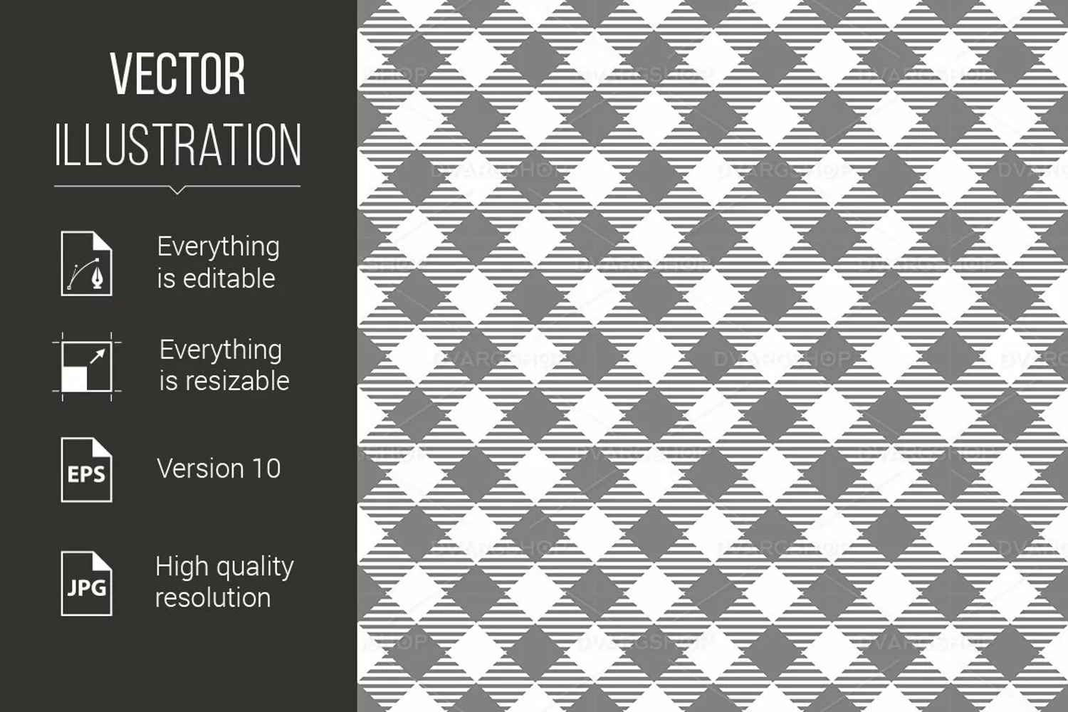 Traditional Design Pattern Seamless White Cloth Table Gray Plaid Gingham