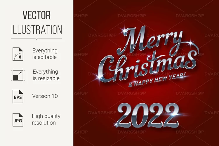 Merry Christmas 2022, and Happy New Year Lettering, for Invitation and Greeting Card, Prints, and Posters. Hand Drawn Inscription, Calligraphic Design on Dark-Red Background