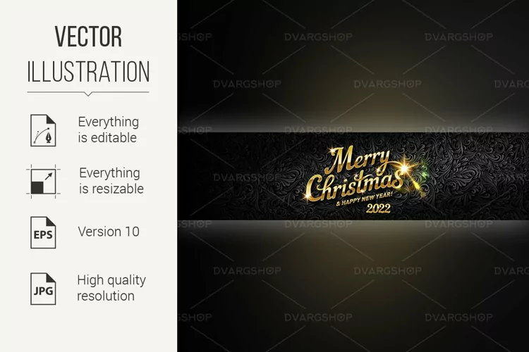 Merry Christmas Lettering for Invitation and Greeting Card, Prints, and Posters with Golden Bokeh Number 2022. Calligraphic Design on Black Background