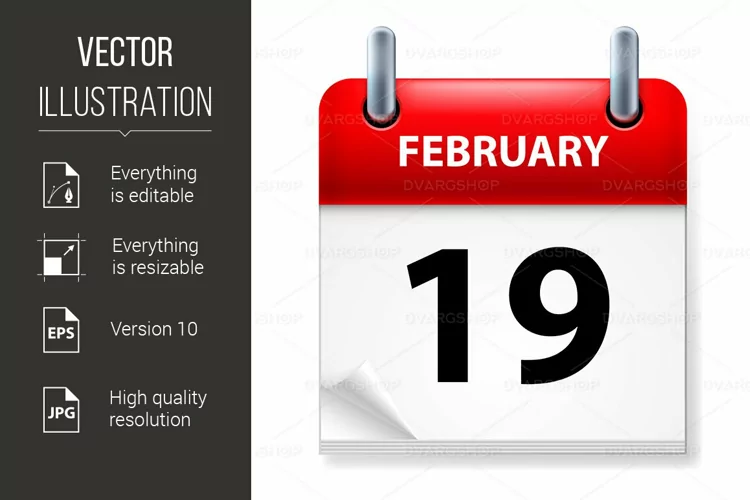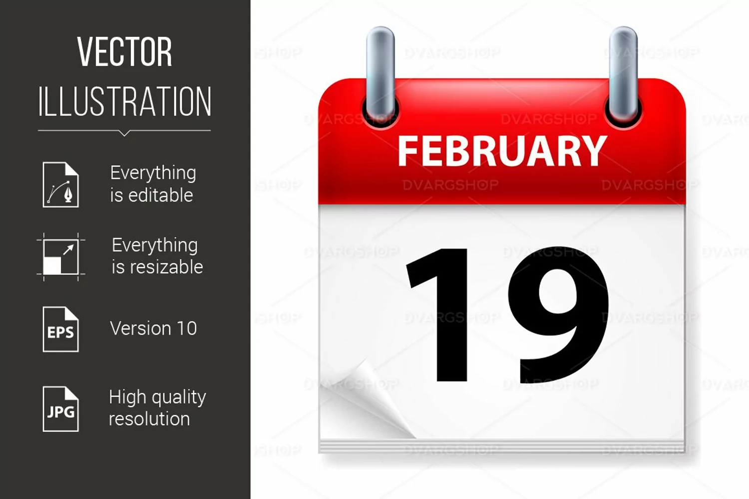 Icon Office Background Element White Calendar View February Organizer Nineteenth