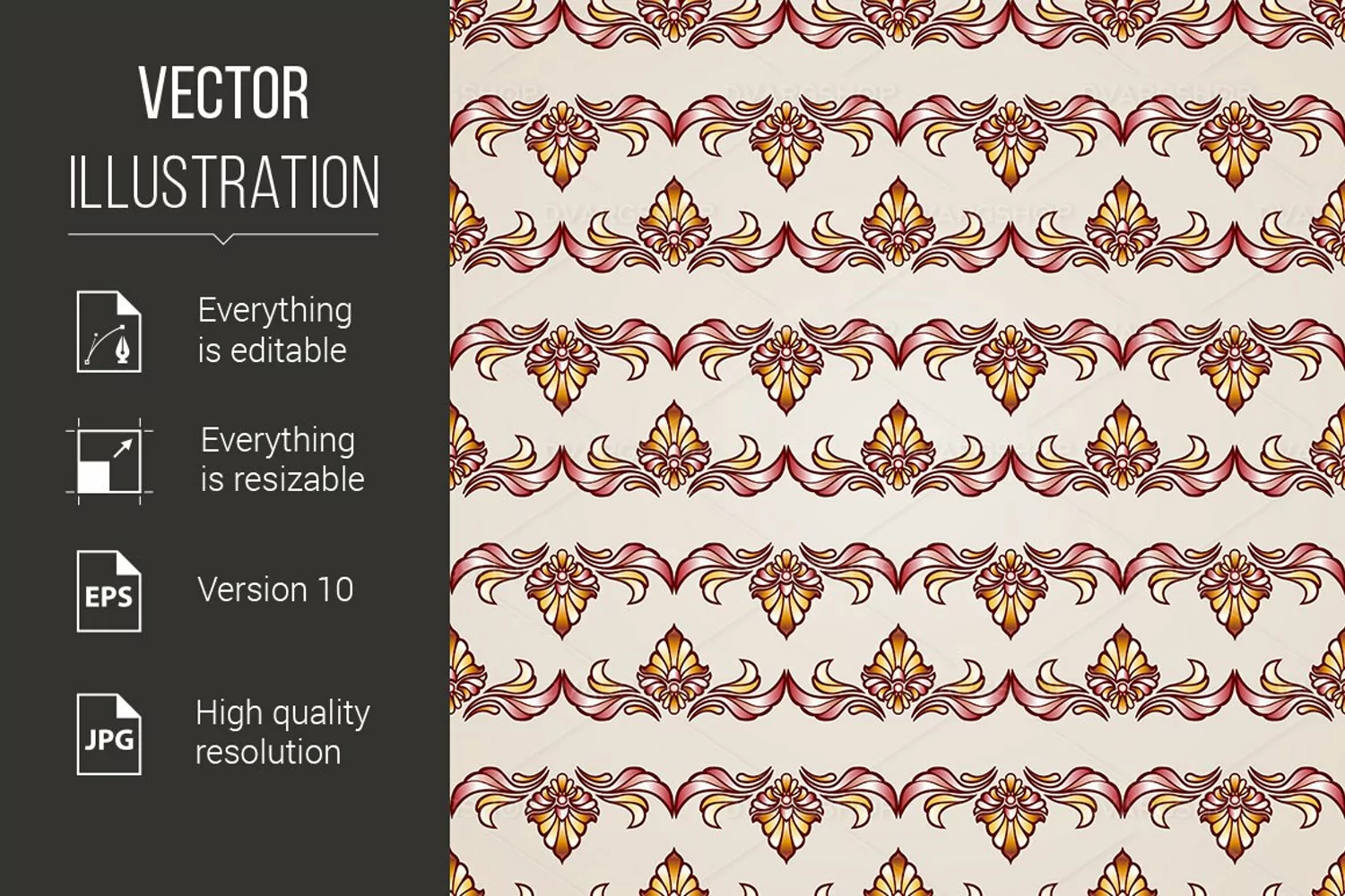 Decorative Old Floral Eps Curved Pattern Brown Seamless Beige Stripy