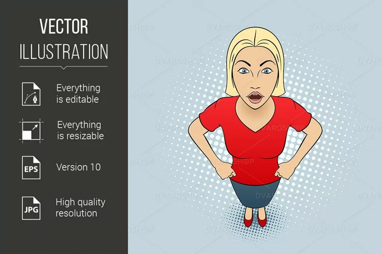 Cartoon Illustration of a Young Woman with Her Hands Akimbo