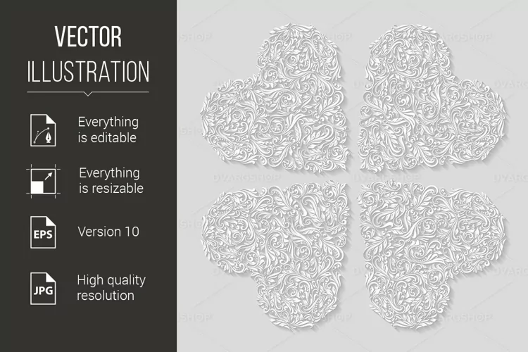 Decorative four hearts of the rich ornament
