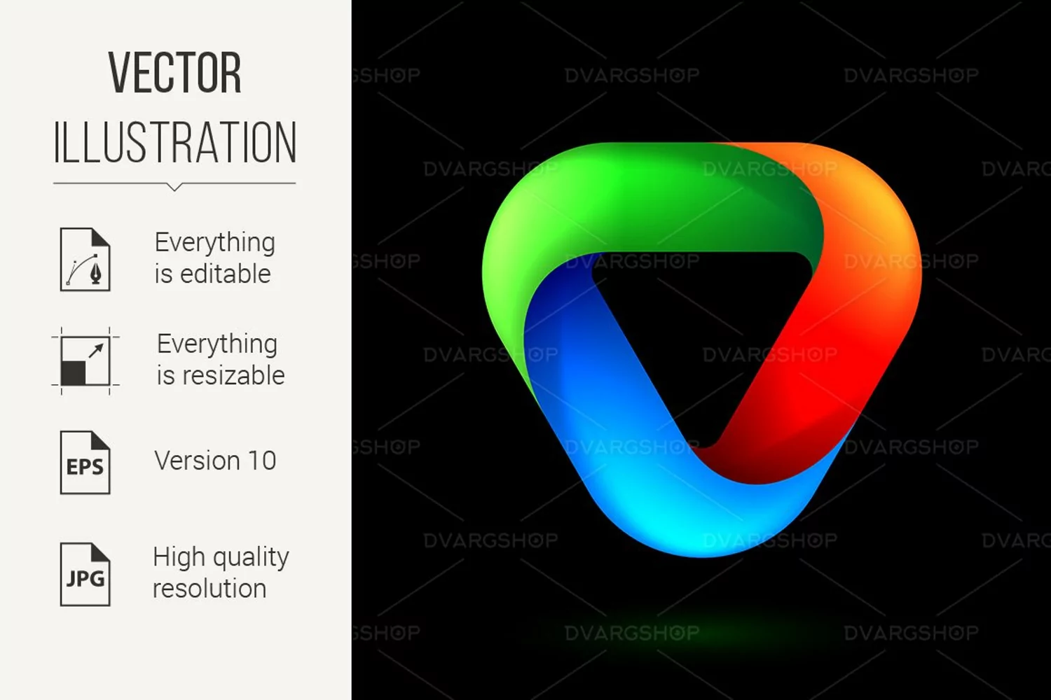 Abstract Infinite Impossible Loop Triangle Logo. Corporate Icon Logotype. Creative Square Infinity Color Concept. Logic Puzzle. Infinite Triangular Ring on Black