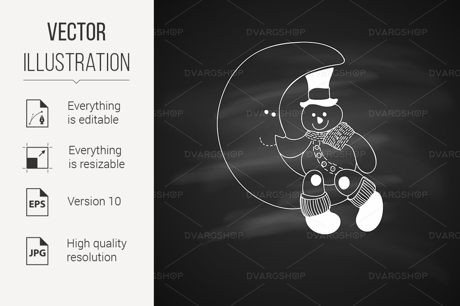 Chalk Drawing of Artistic Christmas Doodle Icon. Funny Snowman on the Moon. New Year Vintage Design for Christmas Card or Invitation