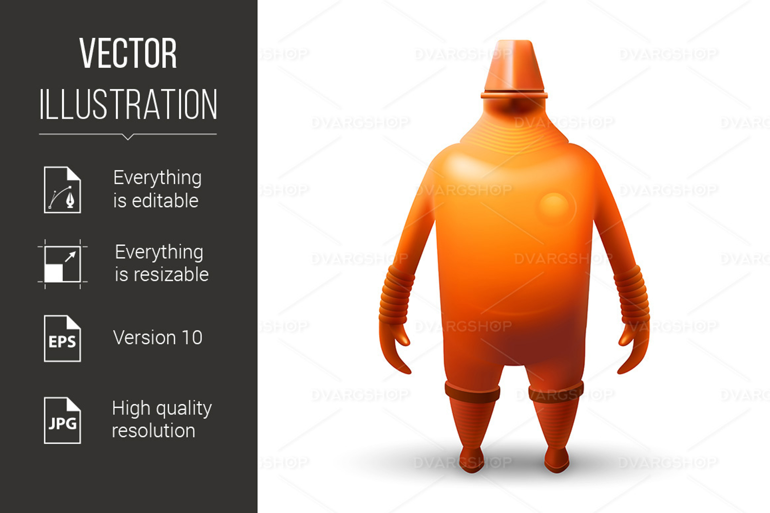 Senior Super Hero Robot Defender of the Universe. Tough Orange Fat Bot Humanoid Mascot Character Illustration on White Backdrop