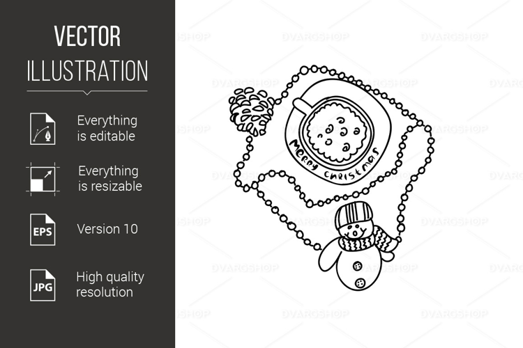 Hand Drawing Artistic Christmas Doodle Icon. Snowman and Cup of Tea. New Year Vintage Design for Christmas Card or Invitation on White