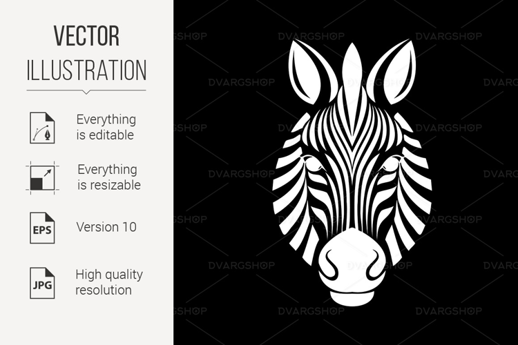 The Zebras Head logo showcases the striking profile of a Black-and-White Zebra, distinguished by its prominent Mane and tall, Pointed Ears, set against a clean, Black Background