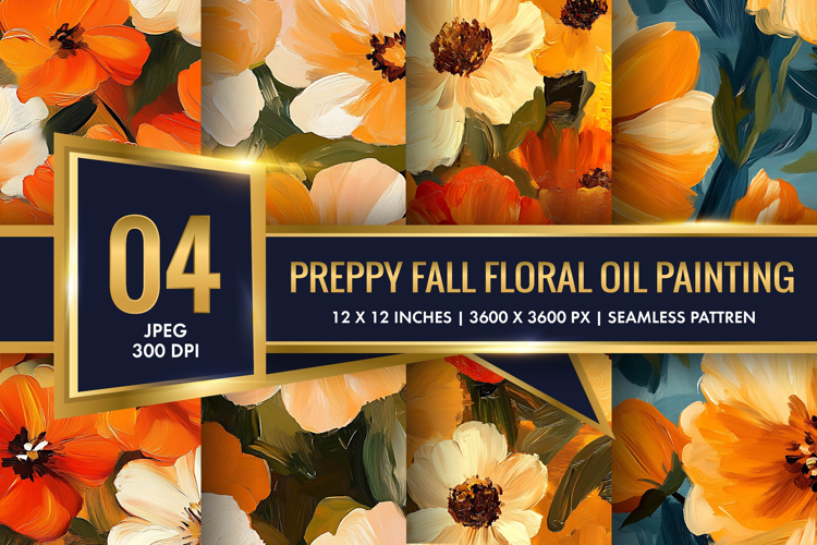 Chic Autumn Floral Oil Painting Set Digital Paper example image 1