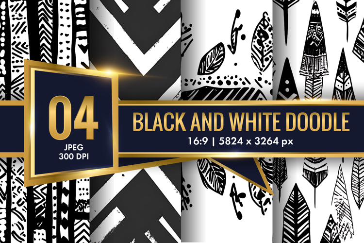 Black and White Doodle Art for Digital Paper