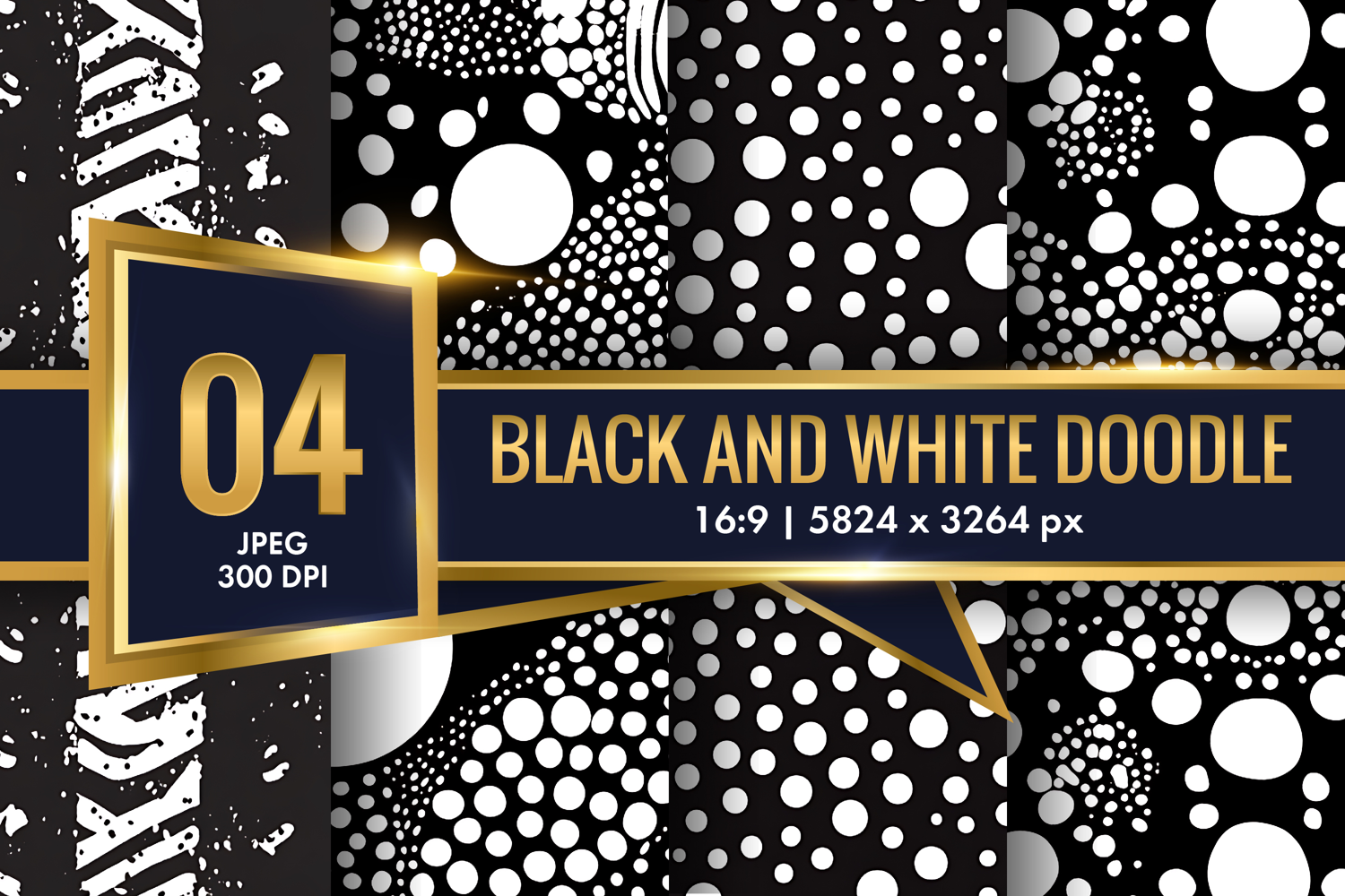 Trendy Black and White Boho Doodle Patterns Digital Paper