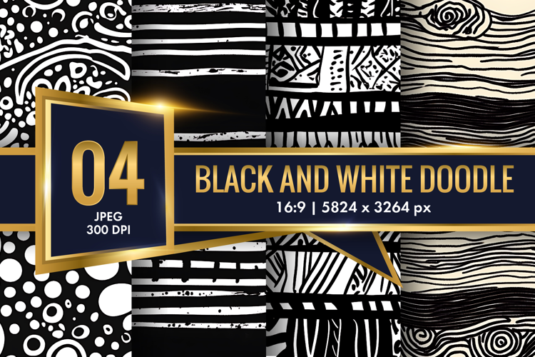 Bold Black and White Abstract Doodle Patterns Digital Paper