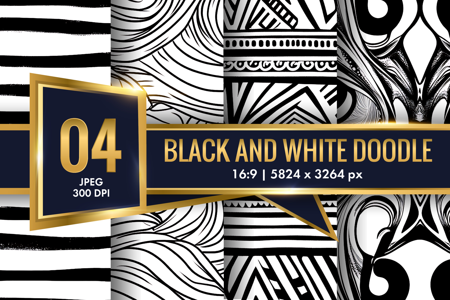 Black and White Abstract Doodle Patterns Digital Paper