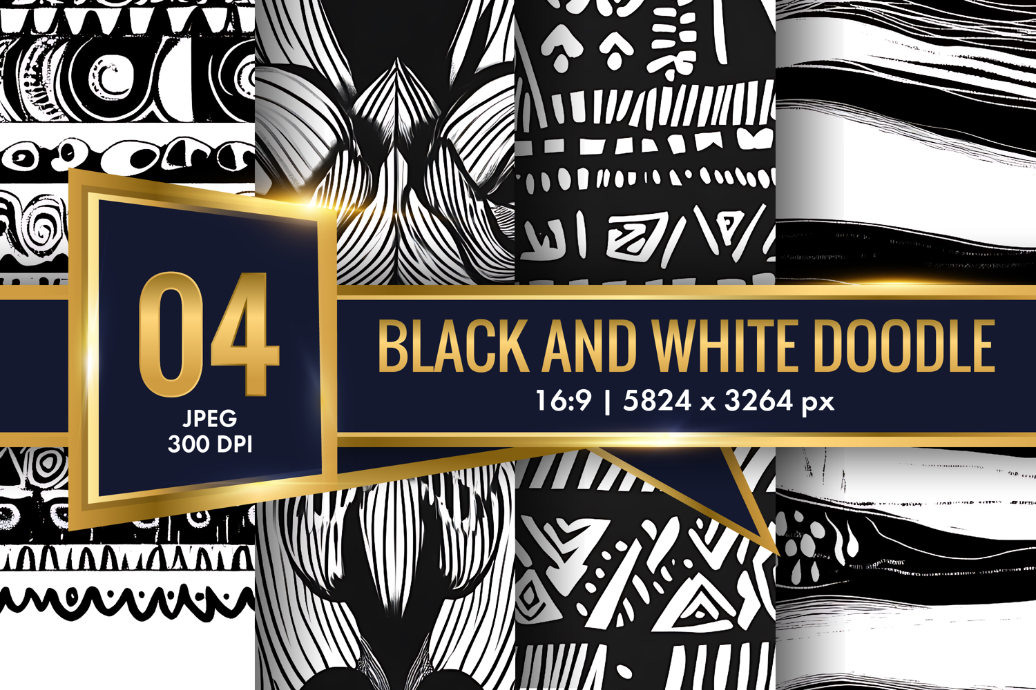 Doodle Black and White Abstract Patterns Digital Paper